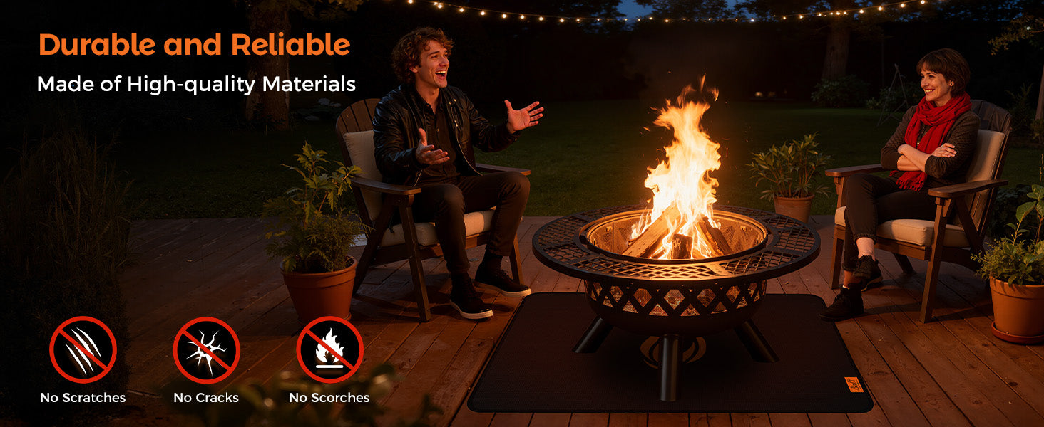 - High Heat Resistance: Engineered to remain steady under rising intensity, grill mat protector withstands temperatures that reach 2000 degrees Fahrenheit, helping protect decks and garden pathways from drifting embers. Camping fire pit mat disperses heat across its layered structure, forminging a consistent barrier that reduces stress on outdoor surfaces. During quiet nights, the mat adds a grounded sense of assurance to every gathering