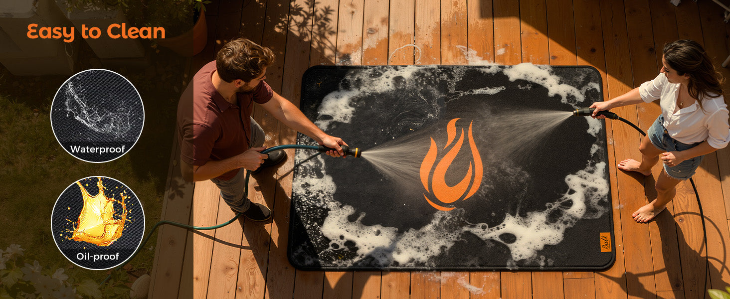 - Easy to Clean: Daily care becomes simple with the smooth surface of grill mat, which resists water contact and oils so spills remain at the top rather than settling in. Outdoor fire pit mat maintains a consistent texture that makes quick wiping feel natural, helping outdoor areas stay composed after long evenings around the flame. Its refined coating prevents buildup, allowing each setup on the porch to feel fresh