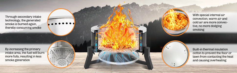 - Smokeless Fire Pit: Experience the warmth and ambiance of a campfire without the hassle of smoke with BALI OUTDOORS smokeless fire pit. Designed with advanced airflow technology, outdoor fire pit promotes efficient combustion, minimizing smoke production while maximizing heat output