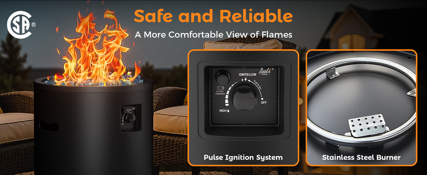 - Security Protection ♡ Our patio fire place has thermocouple, it will cutout source gas automatically when it doesn't touch the flame.