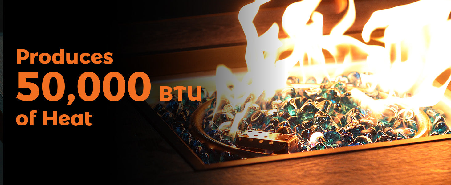 - Modern Style: Glass stones in the propane fire pit create a fascinating effect, reflecting the warm glow of burning fire. Complementing this are four premium tiles that add a beautiful pattern to fire pit table