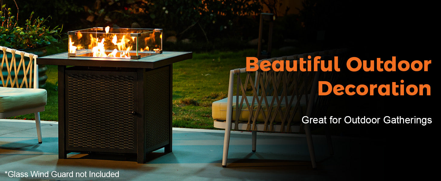 Durable and Sturdy: Made from high-quality metal material, propane fire pit table can withstand harsh outdoor conditions and maintain its performance and appearance. Solid frame ensure it stays securely in place