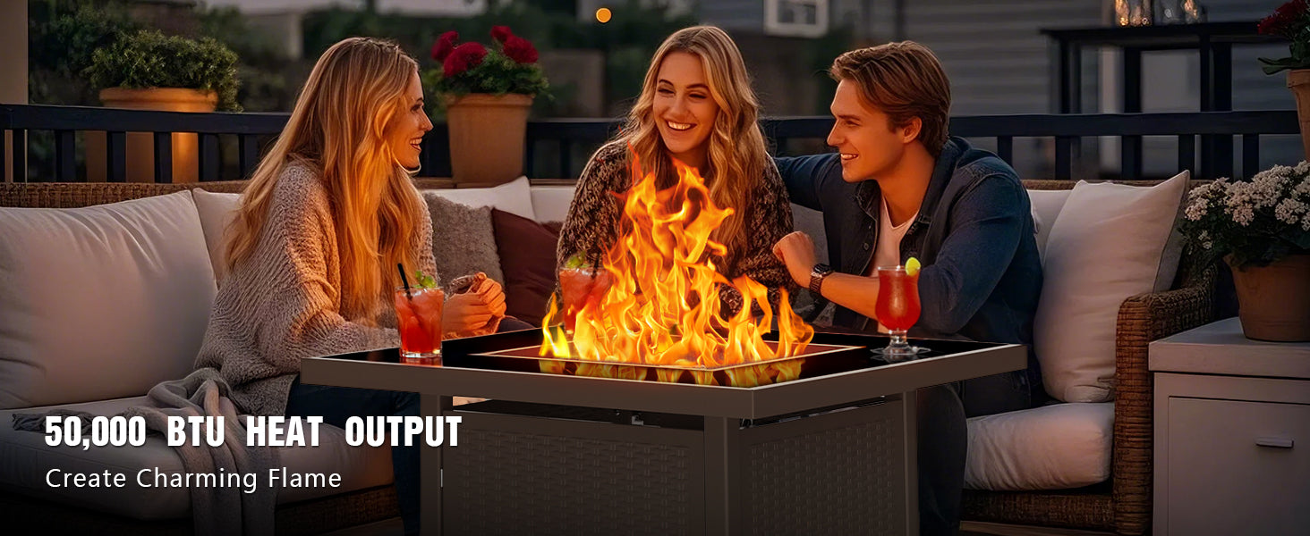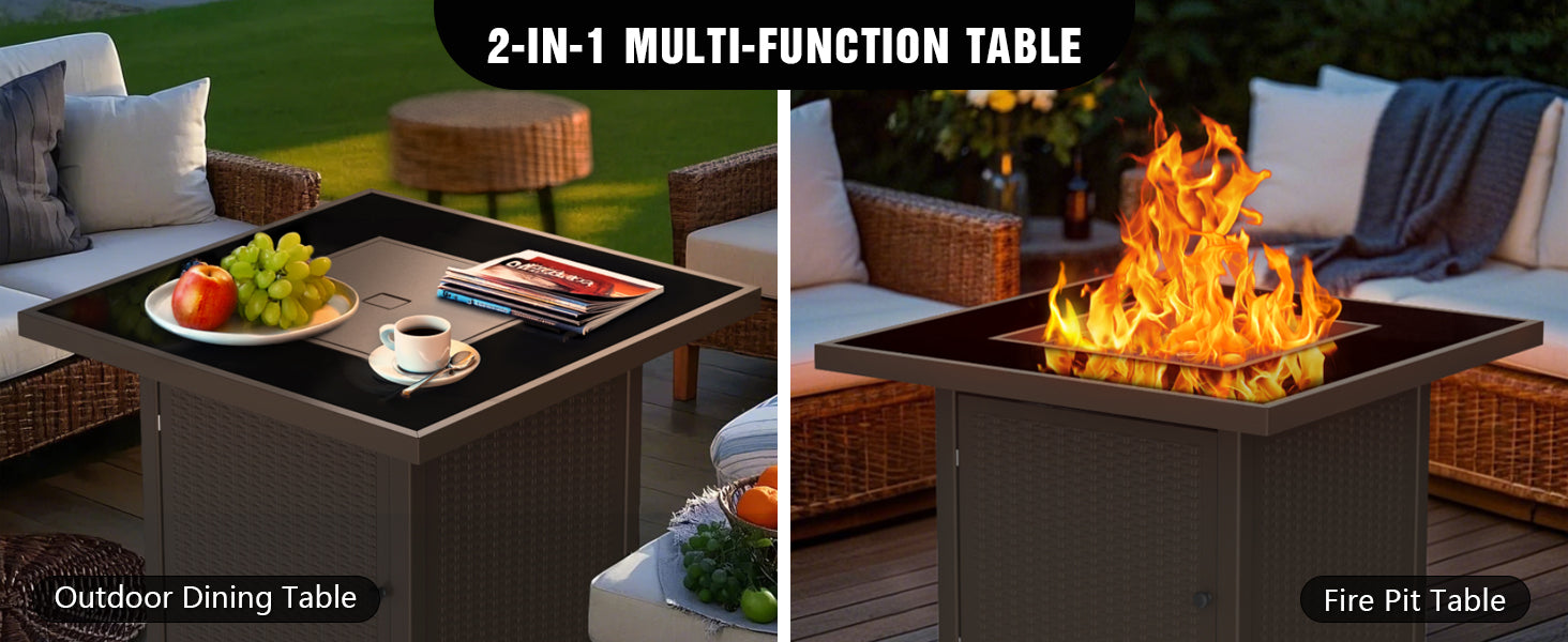 2-in-1 Design: Simply remove fire pit lid to enjoy a warm flame, or cover it to transform the unit into a spacious table. You can easily switch between a propane fire pit and a stylish table, expanding your outdoor space