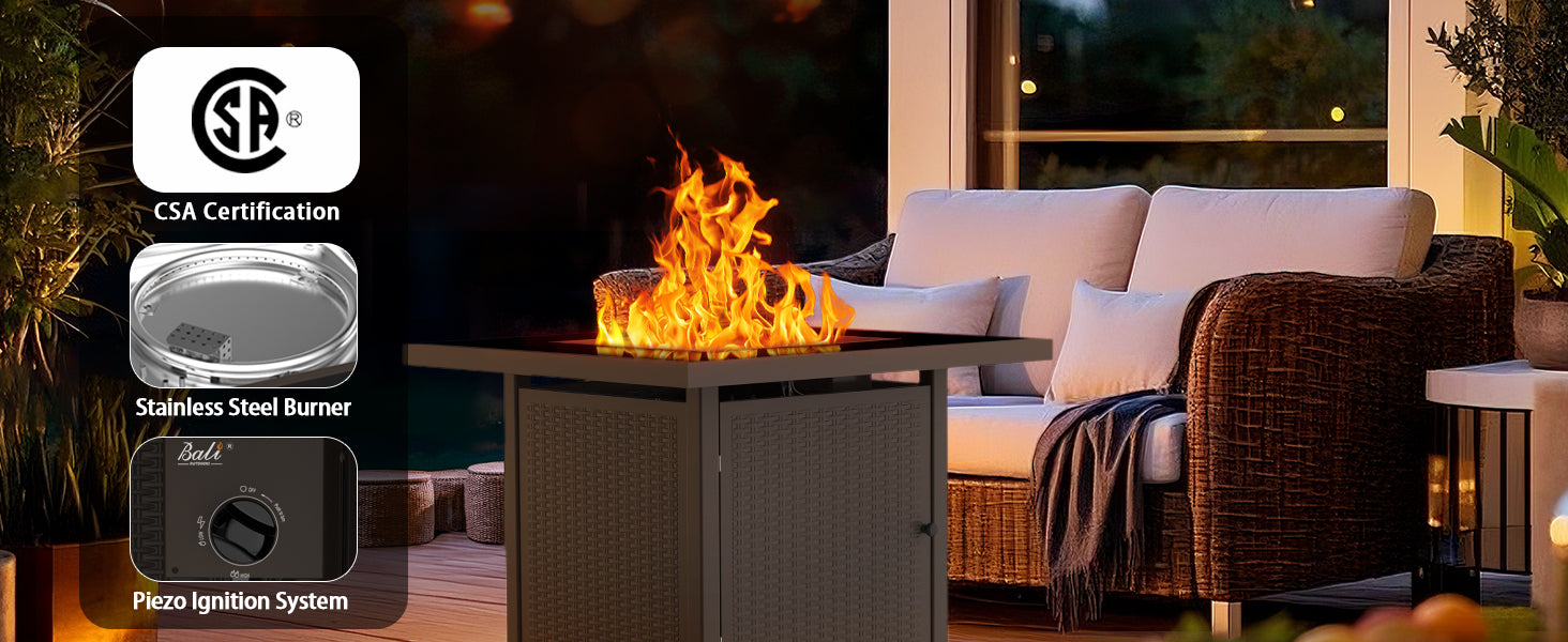 - Safe and Reliable: Propane fire pit table is made of high-quality materials and has a sturdy structural design. In addition, gas fire pit uses an easy-to-use piezo ignition system to ensure a controllable and stable flame