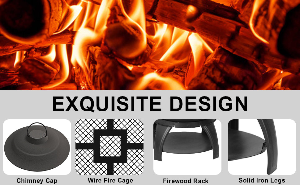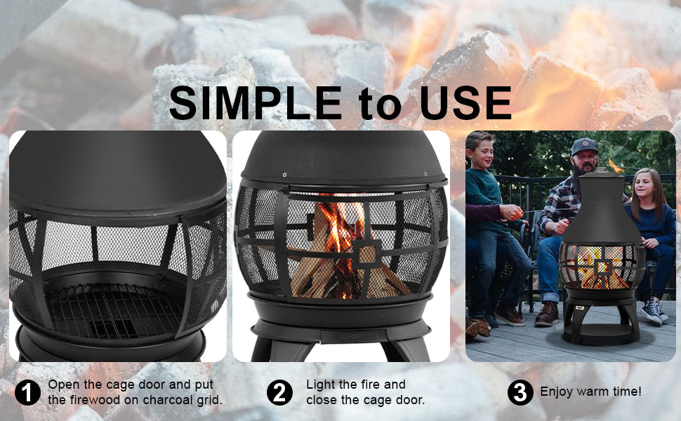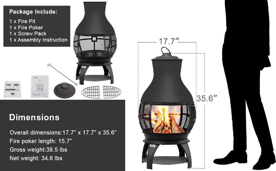 - EASY TO ASSEMBLE AND CLEAN: This wood burning fire pits chiminea is fairly easy to assemble, you can enjoy the assembly process