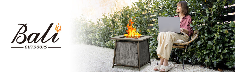 - 2 in 1 Fire Pit Table: Transform your outdoor space with BALI OUTDOORS fire pit table. 28 Inch propane fire pit comes with a lid. Remove the cover and turn on ignition device, and you will get a fire pit table to bring you warmth. Cover the cover to place food and drinks, turning it into an outdoor dining table, coffee table or bar table