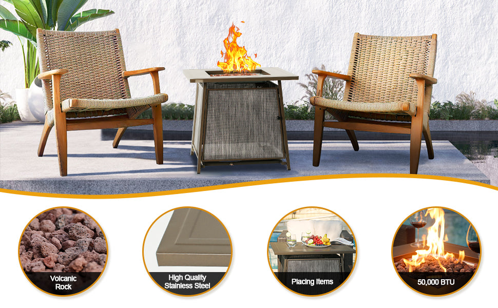 - 50,000 BTU: Excellent outdoor fire pit produces beautiful flames to keep you warm in outdoor environment. The propane fire pit uses propane fuel to provide clean and smokeless combustion, allowing you to enjoy it comfortably without the trouble of ashes and smoke